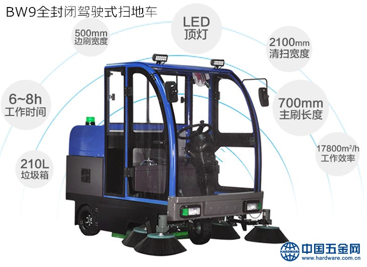 10.配重的滚刷系统,能够适应各种凸凹路面的清扫。