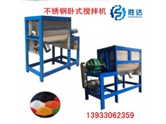 卧式螺带混合机工作原理无重力混合机卧式筒体内装有双轴旋转反向的浆叶,浆叶成一定角度将物料沿轴向、径向循环翻搅,使物料迅速混合均匀卧式混合机性能特点减速机带动轴的旋转速度与桨叶的结构会使物料重力减弱,随着重力的缺乏,各物料存在颗粒大小、比重悬殊的差异在混合过程中被忽略。激烈的搅拌运动缩短了一次混合的时间,更快速、更高效。 即使物料有比重、粒径的差异,在交错布置的搅拌叶片快速剧烈的翻腾抛洒下,也能达到很好的混合效果。