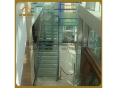 这是我司为澳门路客户定制的玻璃楼梯,踏步为超白钢化夹胶玻璃,超白超长玻璃护栏不锈钢紧固件侧边链接。不锈钢扶手。整体效果简洁、通透而不失高雅。