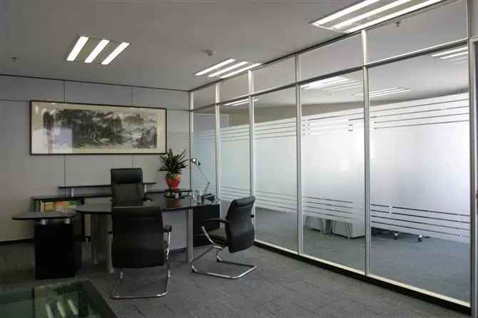 单层玻璃隔断则是中间采用10毫米的钢化玻璃。钢化玻璃可以采用透明式,条纹式,磨砂式,雾化式等。不同的分格,不同的钢化玻璃造就出多彩多样的空间,只有你想不出的,没有做不出的。