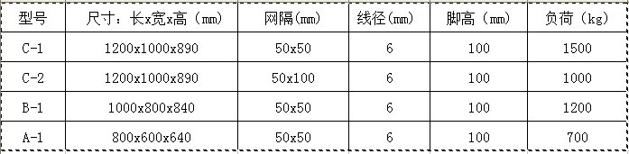 1、采用优质钢材经冷作硬化焊接而成,强度高、装载能力大、表面镀锌,美观抗氧化,坚固耐用、运输便捷、可叠四层、实现仓储的立体化。