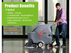1. 可靠耐用,价格实惠。2. 大大提高清洁效率,降低清洁管理成本。3. 显著提高使用场所清洁卫生水平。4. 仪表盘上直观的按钮,操作极为简单,无需特别培训。5. 大容量水箱(清水箱50L,污水箱50L),适合大面积地面清洗。6. 操控舒适:水平式双水箱设计,均衡承载,灵活轻便;配合人体工学设计的把手和简单清晰的控制面板,操作舒适。7. 智能式操控:配备智能水量感应系统,清水箱水量低时自动切断刷子电源;污水箱水满时自动切断吸水系统电源。8. 智能装卸及水量控制系统:刷子系统采用自动装卸设计,装卸无需任何工具;配备水量自动控制系统,刷子停止转动后自动关闭水源,有效节省清水及清洁剂。9. 浮动式刷盘:配备刷子压力自动调节系统及出水系统,刷子根据地面自动调节压力,保证清洗效果。10. 污水回收系统:弧形吸水扒结合虹吸吸水管设计,实现污水的回收。11. 免工具更换吸水胶条:吸水胶条更换无需工具,吸水胶条可四面使用,有效减低使用成本。12. 维护方便:污水箱可翻转成90°,掀开水箱即可进行电瓶维护,无需任何工具。13. 电瓶充电:连续工作时间可达3小时;内置充电器,充电更方便。