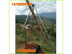 1.支起三脚架立杆机,中间垂直点正对挖好的线杆坑。