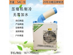 工业冷气机 SAC-18 冬夏移动空调是一种简易便携式的空调,它的实质是把普通空调的内外机合成一体的空调,没有室外机,不需要专业安装,通过压缩机的制冷,利用排风管排出热风,达到局部区域降温的效果。移动空调为无法安装室外机的场所提供了不可替代的便利。从技术的角度来说,移动空调与普通空调的使用功率、制冷量基本上是一样的。不同的是风道循环设计,普通空调的风量循环是针对室内的空气循环,而移动空调是降低室内的空气温度的同时,又吸进室外新鲜的空气,确保与室内的空气的交换,绝不会有“空调病”的发生。这种换新风的风道设计造成了室内的温度不会降得很低。通常外界36℃的情况下,室内的温度大约在28℃左右,局部范围内可达到25℃左右。消费者在选购的时候,要清楚移动空调的Z大特点是局部范围内可以降温!由于移动空调为一体式空调,所以噪声比普通空调要大点。冬夏凭借先进的降噪技术,使得机器运行的Z低噪音降至48分贝左右,相当于2P柜机的声音。