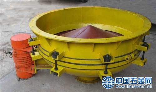 安装在振动料斗外侧的振动电机是振动料斗的激振源,电机启动后,产生惯性激振力,使振动料斗内的球面活化器产生强烈的水平振动。球面活化器将水平方向的激振力分解为沿球面法线方向和切线方向的分力。法线方向沿放射方向传递到物料深处,从而破坏了料仓内的垂直料拱,促使活化器上部的物料从中心向四周快速移动,再沿仓壁下滑,实现物料的整体流动,从出料口均匀排出。
