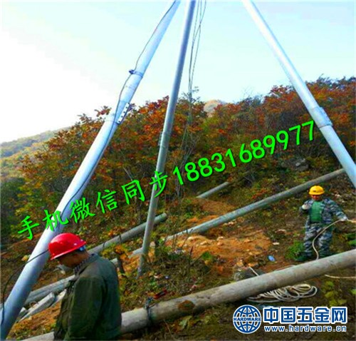 电力施工起杆器 人字抱杆扒杆 水泥杆立杆机中国诚信供应商,铝合金立杆机,水泥杆立杆机,电力工程立杆, 是电力、电信、铁路、集团、大型工厂建设不可缺少的立杆工具,适用于立杆,组装电力铁塔,起吊电缆,钢绞线,电力配线等空旷场所,并且高强度铝合金立杆机主要采用高强度的铝合金材料,安全可靠,自重强,强度高,拆装方便。该立杆起重工具不用打地锚,安全系数高,三个人可以完成工具的组架及立杆,配合双速绞磨,单人就可操作,其余两人调整起吊方向即可。本公司立杆机产品获得省级检CCC品质认定,用户均可放心使用,欢迎广大新老客户的光临选购。 铝合金三角架立杆机:采用天津铝合金厂生产的优质铝合金管材,通过本厂技术人员多年的开发,研制,现以正式投放市场,该产品体积小,重量轻,应用灵活,方便保险,系数高,解决了吊车不能进行的场地及人工立杆危险性大的难题(市区胡同或半山区丘陵地带施工)更能体现其特点,整套立杆过程只需几个人在短暂的十几分钟内完成。