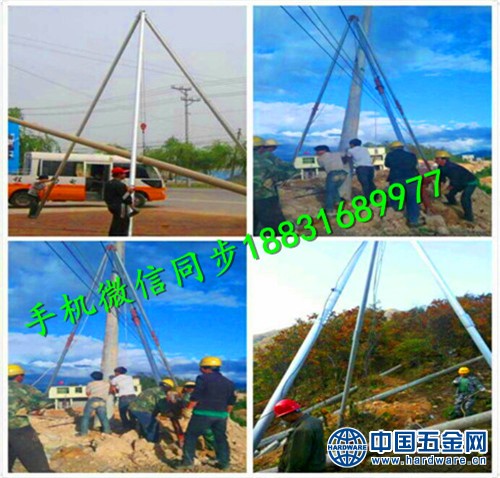 1、用立杆机主杆上配带的销钉,把主杆(长杆)、两副杆的头部进行连接。