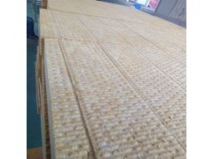 三维法生产岩棉板是在摆锤法的基础上,在叠铺形成的未固化岩棉纤维层,通过机械方法改变岩棉纤维层的分布方向,使岩棉纤维层均匀分布。通过三维法生产的酚醛板岩棉纤维层紧密不易分层或者剥离,因此不论在强度还是在各项参数上都远远领先于其他生产工艺生产出来的产品。