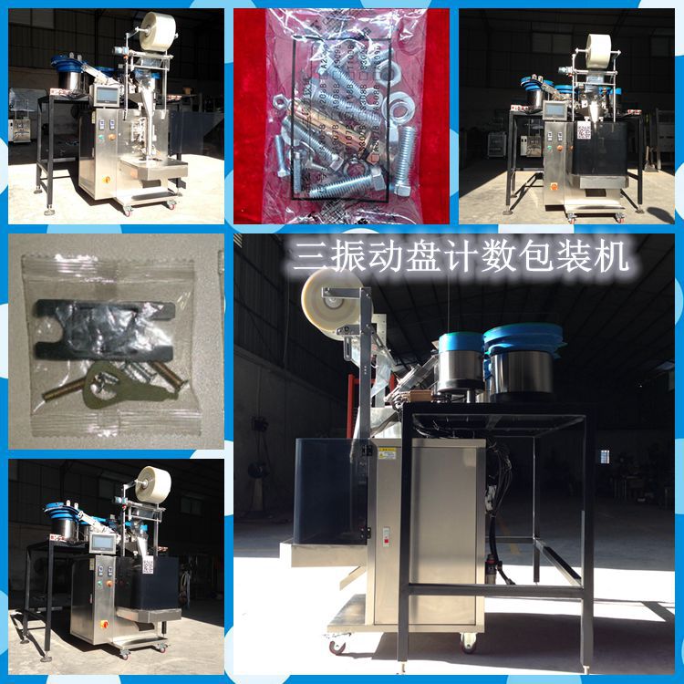 该机适用于五金、电器、灯饰、家具、玩具、特殊行业产品中的附属安装螺丝、螺母、小塑胶件的单种物料的计数包装,如:螺母、螺丝、铁钉、垫片等特殊物料的自动包装。