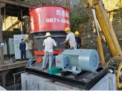 工作时,电动机的旋转带动皮带轮、传动轴和圆锥部在偏心套的迫动下作旋摆运动,从而使圆锥破碎机的破碎壁时而靠近又时而离开固装在上架体上的轧白壁表面,使矿石在破碎腔内不断受到冲击被破碎,破碎的物料从下部排出。出料口大小的调整:底部液压缸的DY个功能在于调节主轴的上下位置,从而调节动锥和外锥衬板之间的间距。这个间距变小了,破碎机的出料粒度就小;这个间距变大了,破碎机的出料粒度就大。同时,选用不同的破碎腔型,选用不同的偏心距也能够改变物料的出料大小。