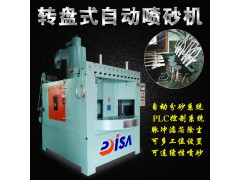 转盘式自动喷砂机适用于盘类、圆柱类、方形工件的内外表面喷砂批量生产,如工艺品、玻璃灯罩、不粘锅、手电筒、烤盘、不锈钢洗手盆、通讯器材等工件。 镝砂转盘式自动喷砂机系列产品(下图)