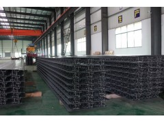 5、钢筋桁架应平行于钢梁端部处,底模在钢梁上的搭接不小于30mm,沿长度方向将镀锌钢板与钢梁点焊,焊接采用手工电弧焊,间距为300mm。