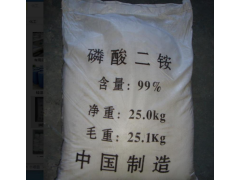 磷酸二铵,是指标准产品含N18%,P2O548%,结晶形状为平斜棱晶,25C水中溶解度为71%,其饱和溶液的pH达到8,比磷酸一铵高得多。将磷矿粉在过量的NH,F溶液、pH6〜7、温度为100度:条件下进行反应,可制得磷酸二铵。但一般工厂采用的是美国田纳西流域管理局(TVA)开发的工艺流程,即采用氨中和混合磷酸(含P2a30%和54%两种浓度的磷酸混合),将氨与磷酸分子比控制在1.4左右预中和,继续控制氨与磷酸分子比为2,通入氨蒸气并使溶液pH保持在7.5以上来制取磷酸二铵。由于磷酸二铵饱和溶液为碱性,施在酸性土壤上可以减少铁铝对磷的固定,使磷保持较高的有效性,故提倡磷酸二铵用在酸性土壤上。