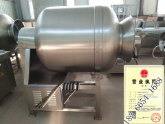 真空滚揉机是在真空状态下,利用物理冲击的原理,使肉产品在滚筒内上下翻动,相互撞击、摔打,达到腌渍作用,使肉均匀的吸收腌渍,提高肉的结着力及产品的弹性,通过滚揉能使肉体蛋白质分解成水溶性蛋白,易被人体吸收,同时能使添加料(淀粉等)与肉体蛋白质互为融合以达到肉质变嫩,口感好,出品率高。本机具有肺呼吸功能,让产品在滚筒内膨胀、缩小做往复运动,改善了肉组织的效果。