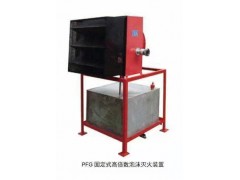 供水设备提供0.3-1.0mpa的压力水,一部分经主管道直接进入水轮机驱动旋转,并通过水轮机轴带动风轮转动。另一部分水流经比例混合器,在喷嘴处流速急剧增大,使真空室形成真空,储罐内的高倍数泡沫液由吸液管吸入比例混合器的真空室,与从喷嘴射出来的水混合,一起进入管道,再与从水轮机流出的水第二次混合,经管网通过四个喷头把泡沫混合液以雾状形式喷向发泡网,在网的内表面形成一层薄膜,由风轮吹到网上的风,吹胀成大量气泡,形成高倍数泡沫,淹没或覆盖燃烧着的物体表面。利用泡沫的遮断、冷却和窒息作用达到灭火的目的。