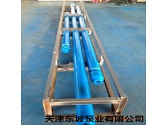 大流量高扬程潜水泵之所以在扬程上受限,主要原因是不能克服轴向力,就是说电机的止推轴承不能承受更大的推力,所以扬程受到限值,为了更好的解决上述问题,天津东坡泵业技术部潜心研究了一种新型矿用短促潜水泵。