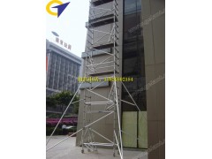 单宽70度斜爬梯式铝合金脚手架增加了70度斜爬梯,使得单宽度铝合金脚手架方便上下,同时具备单宽度铝合金脚手架的优点在有限空间的情况下使用和非常方便运输携带,它能安装在走廊、扶手电梯、楼梯等空间比较狭窄,拆卸完毕一般小型的面包车就能装得下所有配件。具备轻巧、灵活的特点。