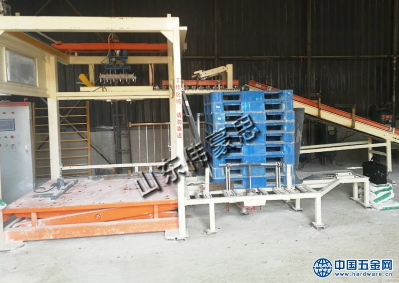包装全自动粉煤灰码垛机又叫码垛搬运机,是可以将物料搬运至目的地并且码叠成垛的一种设备。该设备是机、电一体化高新技术产品,中、低位码垛机可以满足中低产量的生产需要。可按照要求的编组方式和层数,完成对料袋、胶块、箱体等各种产品的码垛。