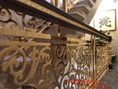 铝艺雕刻楼梯栏杆的造型非常独特,和其他种类的栏杆相比,在造型上有着显著的区别,普通栏杆一般都是众多的“杆”组合起来来起到防护的作用。铝艺雕刻楼梯栏杆在雕刻的工艺上面首先要讲到雕刻的图案,一般雕刻的图案有吉祥图案、花鸟鱼虫、宗教符号、几何图形等。欧式铜楼梯纯铜雕花楼梯扶手效果图片大全。河北仿铜楼梯拉丝古铜楼梯护栏批发厂家。