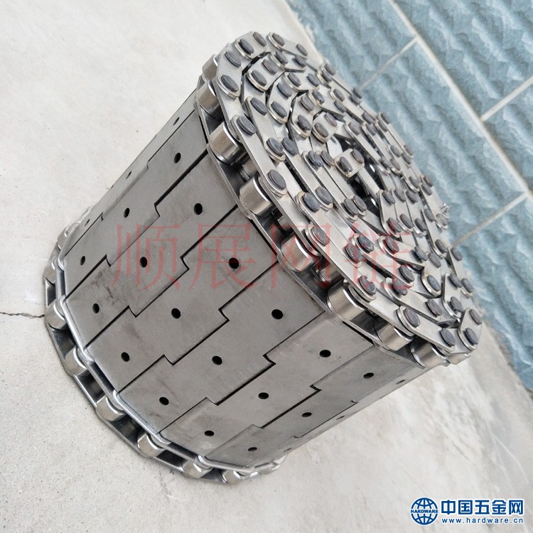 冲孔链板材质:碳钢、不锈钢、热塑链,根据您的产品的需要可选取不同宽度、不同形状的链板来完成平面输送、平面转弯、提升、下降等要求。