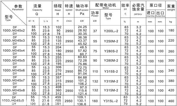 长沙水泵厂家100MD45*3多级离心泵产品参数表