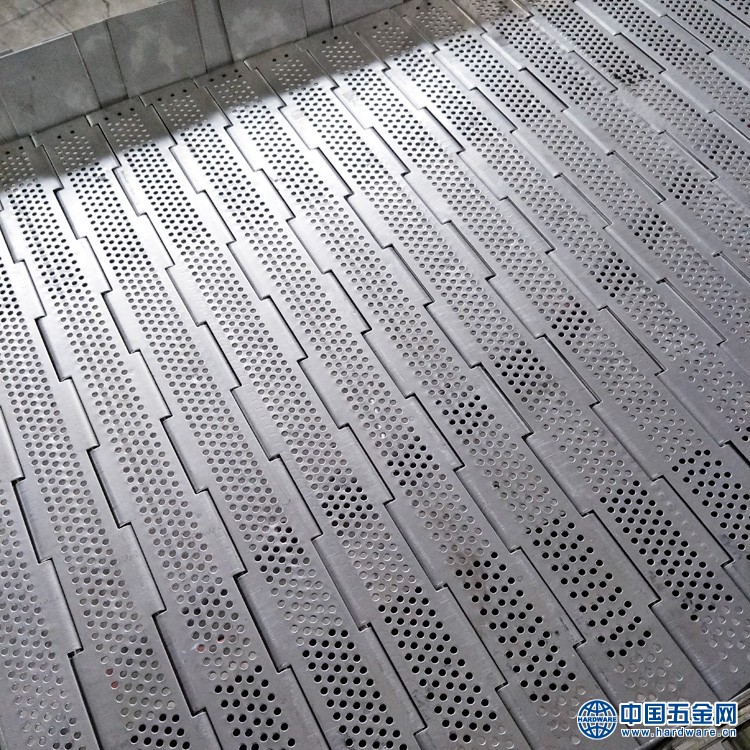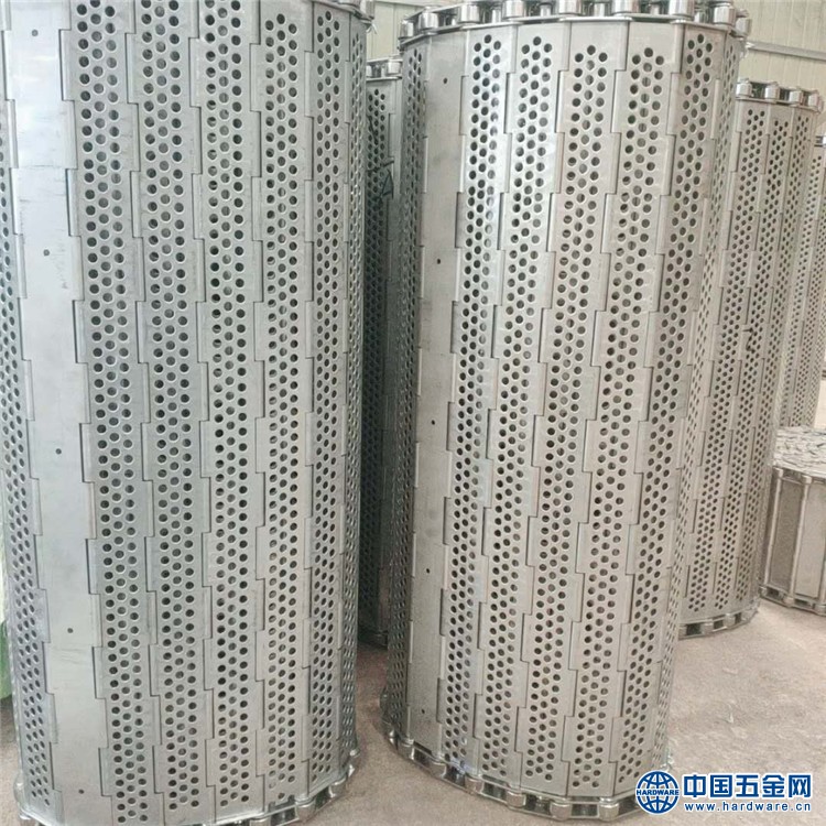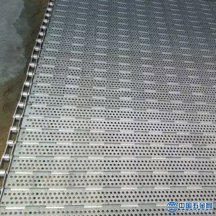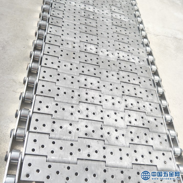 链板输送带是在承载链条上,每节之间再加上一较高的承载滚子附件来承载货物。而链条是以滚子来与轨道滚动滑行。由于链条上的滚子与轨道是以滚动接触,摩擦阻力小,动力损耗低且可承载较重的荷重。其荷重能力与支架强度、链条大小及滚子尺寸、材质均有关系,而滚子材质一般为钢制,但有些场合为了降低噪音,而采用耐磨耗的工程塑料制造。