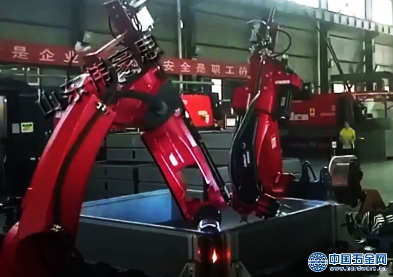 管道双工位机器人焊接机采用两组机器人自动焊接系统,电脑显示屏操作,自动化工作能力强,本机生产效率高,节约人工,节约生产成本,环保洁净。两台机器人协作完成焊接任务,节约了装夹时间,提高了工作效率。