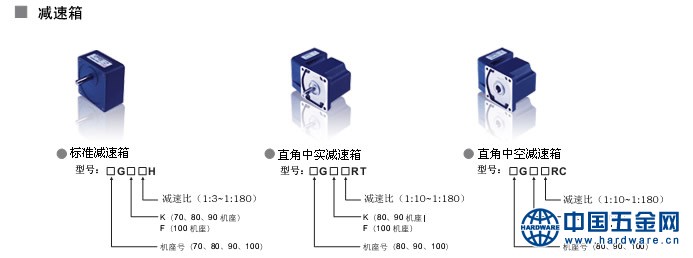 可配减速箱:H标准减速箱、RC直角中空减速箱、RT直角中实减速箱