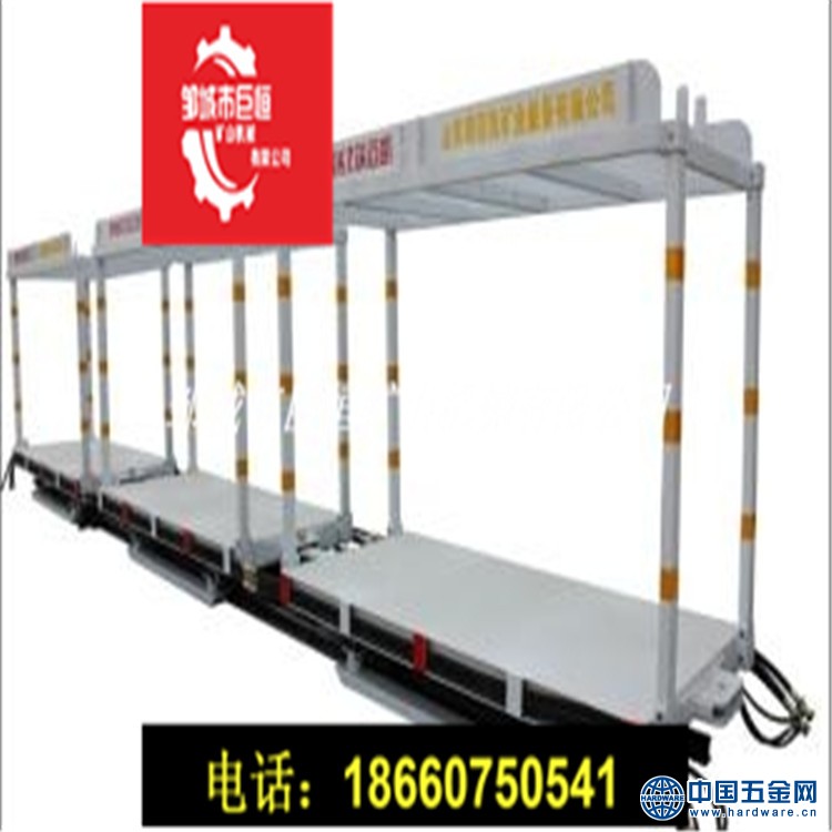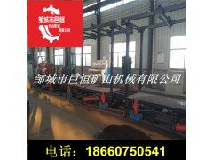 液压自移式平板车上面安装固定设备后,其首尾通过连接板顺次连接,行走轨道通过中间段连