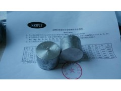 A356光谱标样本套块状标样为圆柱体,规格为Φ50×30mm,每套6块。本标准样品适用于A356铸造铝合金中Si、Fe、Cu、Mn、Mg、Zn、Ti、Cr、Ni、Pb、Sn、Sr、Ca的分析;也可任选单块做控样或高低标样。