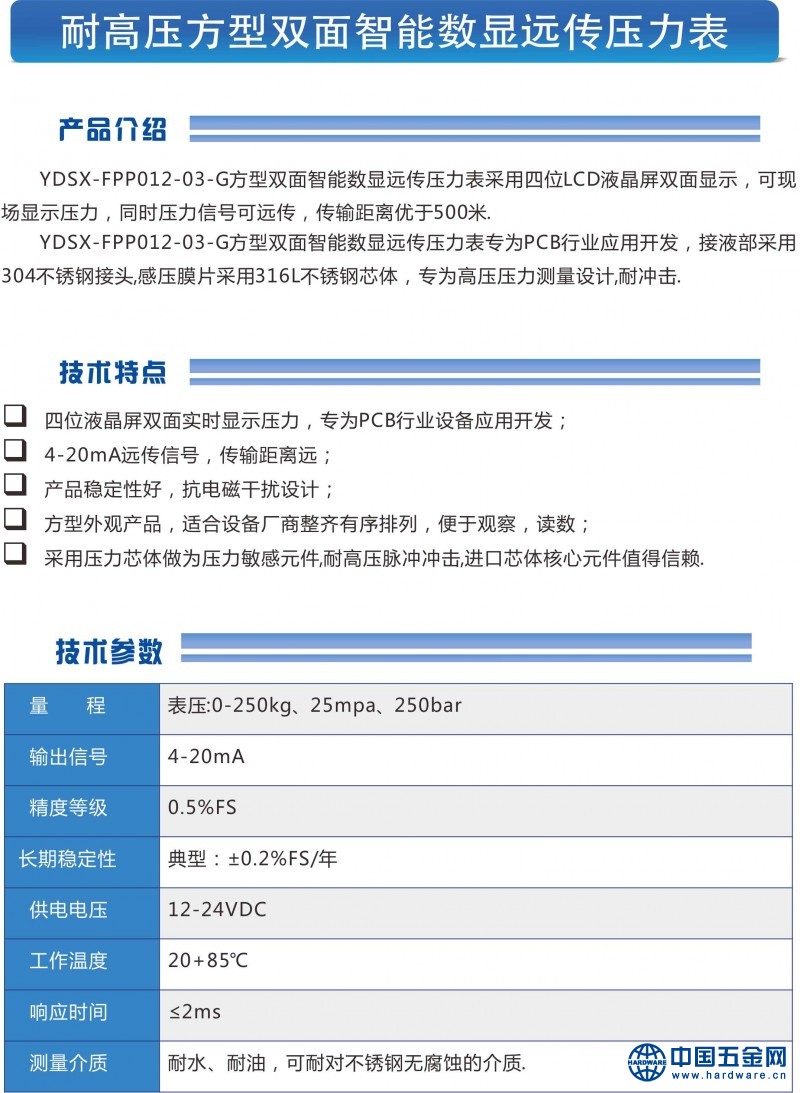 耐高压方型双面智能数显远传压力表