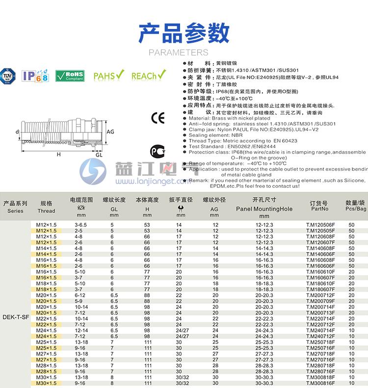 M公制金属防折弯电缆接头 耐扭带弹簧格兰头M12-M25