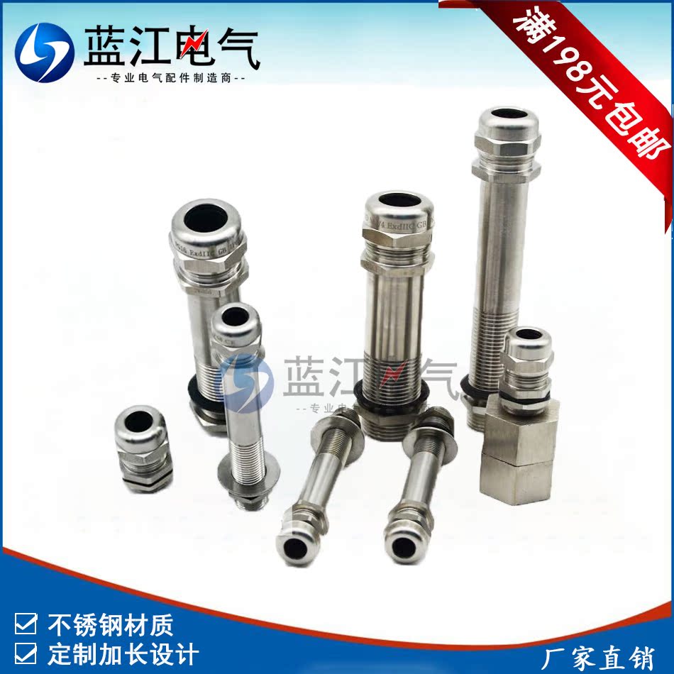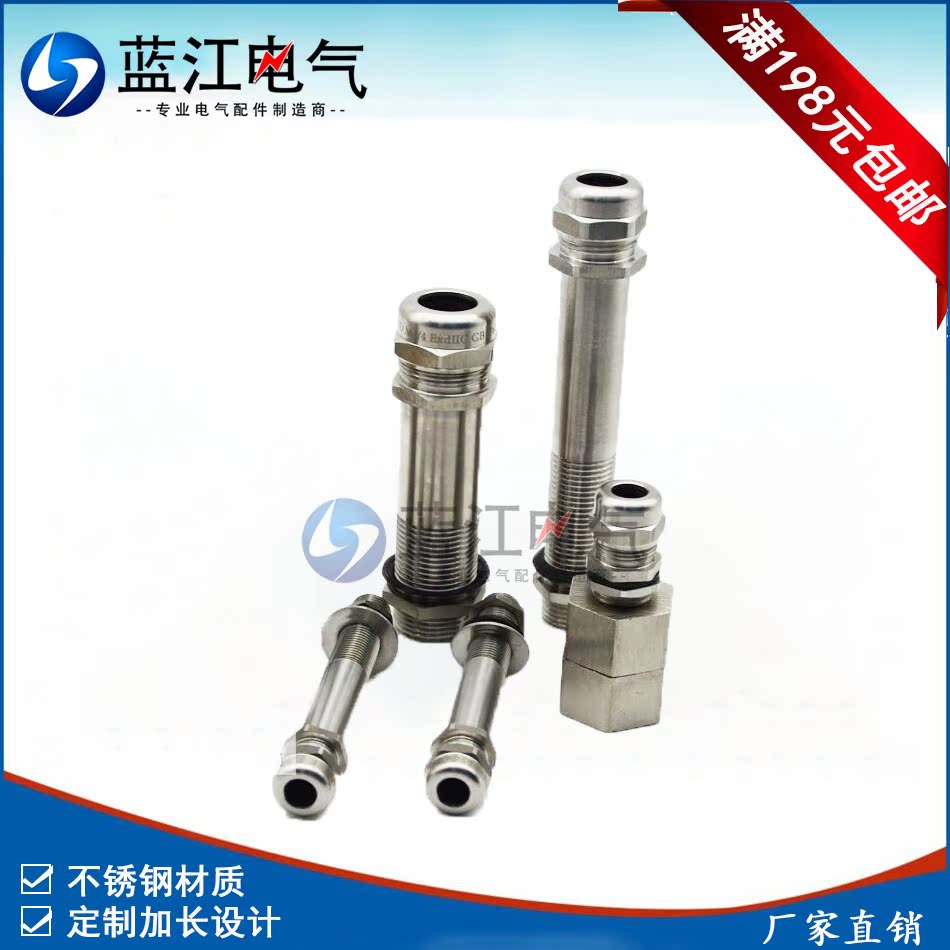 定制款 加长型不锈钢电缆防水接头 防爆葛兰尾长80/100/120/150/180/200mm,蓝江/蓝盛倾力打制,高端定制;