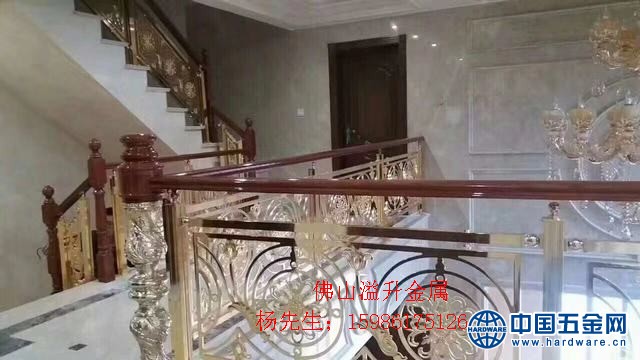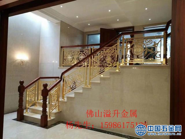 金色铝雕刻楼梯护栏订做厂家 **别墅楼梯扶手”详细介绍