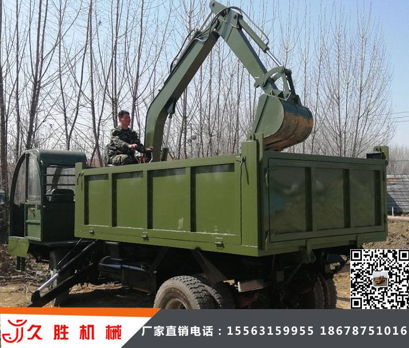 随车挖掘机主要是原车改造翻斗车上使用,挖掘壁安装在车架上,直接开走挖土装车,在一台农用车上加装挖掘臂为了增加稳定性加装支腿油缸据车主介绍回转机构可实现270°回转,自己改装的不知道稳定性如何,采用拖拉机的发动机因为有挖掘臂的存在只能采用敞篷驾驶室,简单来说就是将一条挖掘臂与一台农用车进行结合。