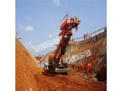护坡锚固钻机主要适用于:建筑、水利、勘探、深基坑支护,边坡加固等工程,尤其适用于基坑锚杆孔、建筑工地钻探,该钻机采用履带式底盘,行走方便,配套使用麻花钻杆,三叶合金钻头,优点是钻臂的行程高度可达到5.5-20米,日钻孔效率可达400-600米,大大节约了人工成本。