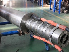 5、潜水电机采用水润滑轴承,下部装有橡胶调压膜、调压弹簧,组成调压室,调节由于温度引起的压力变化;电机绕组采用聚乙稀绝缘,尼龙护套耐用消费品水电磁线,电缆联接方式按QJ型电缆接头工艺,把接头绝缘脱去刮净漆层,分别接好,焊接牢固,用生橡胶绕一层。再用防水粘胶带缠2~3层,外面包上2~3层防水胶布或用水胶粘结包一层橡胶带以防渗水。