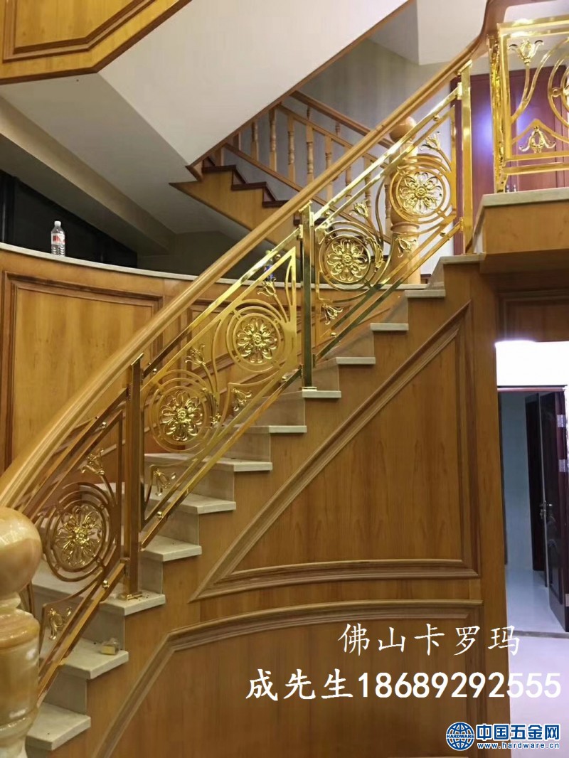 铜楼梯扶手一般都伴有雕花的设计,镂空部分整体的分布非常合理。不仅显出优美,而且还把镂空面积均匀分布,这样在实际的安装使用时候,就会有很安全的保证,没有大面积的镂空,减少不安全因素。