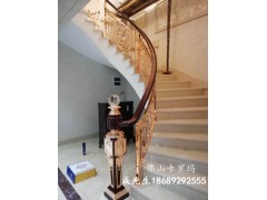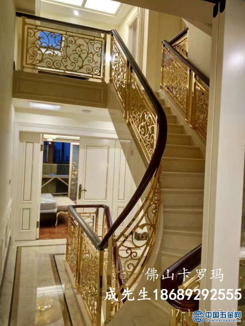 玫瑰金、24k金、钛金、?古铜应有尽有,雕花护栏铜楼梯,可来图订做,雕刻护栏自由造型、中欧式任选、风格多样化,任你订制。室内用护栏的表面处理原料为防水性的材料,制成防撞护栏外形美观,且不易生锈,为你爱居的装饰装修增添了赏心悦目的风景。佛山市卡罗玛金属制品是一家集生产、销售、设计、安装为一体的专业生产铜艺,铝艺为主的综合性企业。公司主要经营铜楼梯扶手、屏风、工艺品产品。产品适用性广,能满足从豪华贵族到普通平民各层次需求。公司拥有完整、科学的质量管理体系,产品已远销东南亚等国家。我厂诚信、实力和产品质量获得业界的认可,欢迎各界指导和业务洽谈。