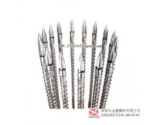 螺杆何用进口高合金钢全硬化处理,有效承受高扭力、高压力冲击,耐磨耗,表面电镀,耐腐蚀,平滑无孔隙以减少表面粘附的降解,细部结构精心处理,藏胶有效防止,低剪切设计,发热小。一般取中小直径,成型PC、BS+PC、PP-R、阻燃ABS等效果好。也可成型一般塑料及PMMA普通制品,但混色效果较差。如塑料中加色粉,需订做加强混色型螺杆 。