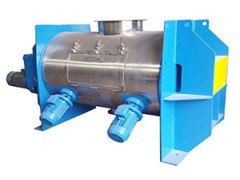 搅拌器的犁头带动物料沿圆形简体作圆周流动的同时,还向犁头两边分,使物料在筒体内交错、对流,从而达到快速混合。