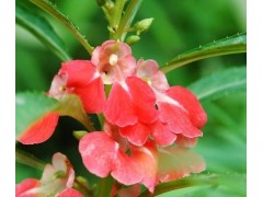 凤仙花,别名:指甲花,急性子,凤仙透骨草,拉丁文名:Impatiens balsamina L.,为双子叶植物纲、牻牛儿苗目、凤仙花科、凤仙花属一年生草本花卉,全株分根、茎、叶子、花、果实和种子六个部分。因其花头、翅、尾、足俱翘然如凤状,故又名金凤花。凤仙花的身体有根、茎、叶子、花、果实和种子六个部分。花颜色多样,有粉红,大红,紫色,粉紫等多种颜色,花瓣或者叶子捣碎,用树叶包在指甲上,能染上鲜艳的红色,非常漂亮,很受女孩子的喜爱。