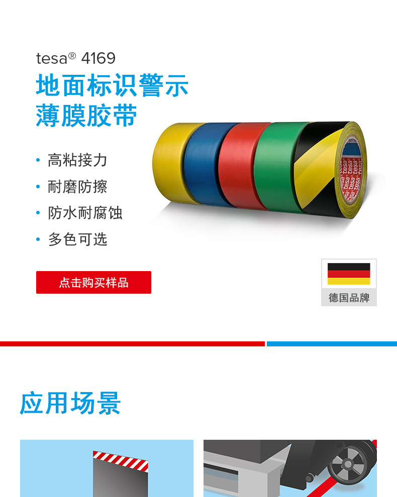 德莎4169,TESA4169是以PVC为基材,力度是标线带聚氯乙烯和丙烯酸水性胶粘剂。它是完美的适合永久标记应用。