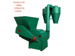 在粉碎秸蔓类时无须预加工也不需要机手在进料口用手喂料,只须用棍杈挑入破碎仓即可,使用时在距破碎仓一米处直接将花生秧,地瓜秧,麦秸,整捆玉米秸秆等投入破碎仓,通过秸杆的下沉力自动进料,经粗加工后自动进入粉碎室进行二次粉碎。草粉由风机提入沙克龙集粉器后装入袋子。克服了以往粉碎机喂料困难,危险,效率低下,草粉装袋费.