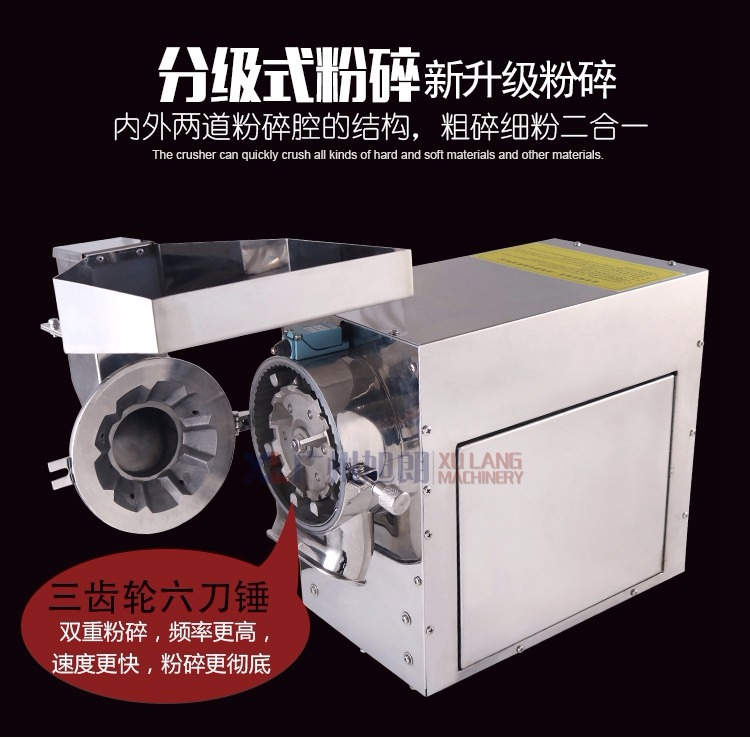**粉碎机使用方便,操作简单,只需要按照说明书先后倒进药材,按动相关的按钮,就会自行的粉碎,粉末达到我们想要的效果,操作人群范围广,无限制,对于家庭、小型的中医药诊所或者制药企业来说都是非常的方便。