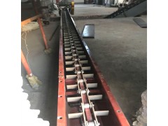 刮板输送机的工作原理是,将敞开的溜槽,作为煤炭、矸石或物料等的承受件,将刮板固定在链条上(组成刮板链),作为牵引构件。当机头传动部启动后,带动机头轴上的链轮旋转,使刮板链循环运行带动物料沿着溜槽移动,直至到机头部卸载。刮板链绕过链轮作无级闭合循环运行,完成物料的输送。