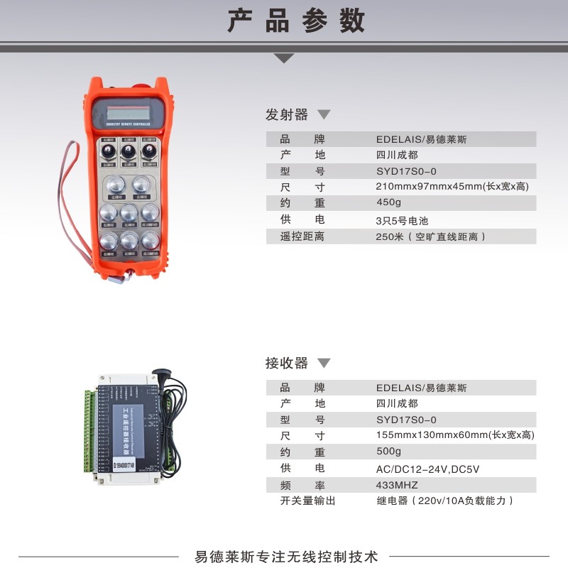 易德莱斯专注无线控技术,专业生产工程机械、矿山机械、焊接切割、绳锯切割、石油机械、木工机械、轨道机车、行车类等无线遥控器,厂家直销,功能可根据用户需求定制。
