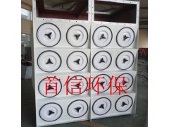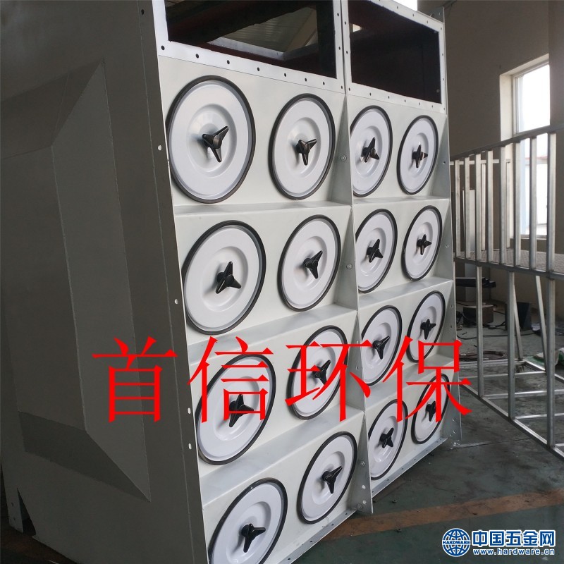 滤筒在除尘器中的布置很重要,既可以垂直布置在箱体花板上,也可以倾斜布置在花板上,从清灰效果看,垂直布置较为合理。花板下部为过滤室,上部为气箱脉冲室。在除尘器入口处装有气流分布板。