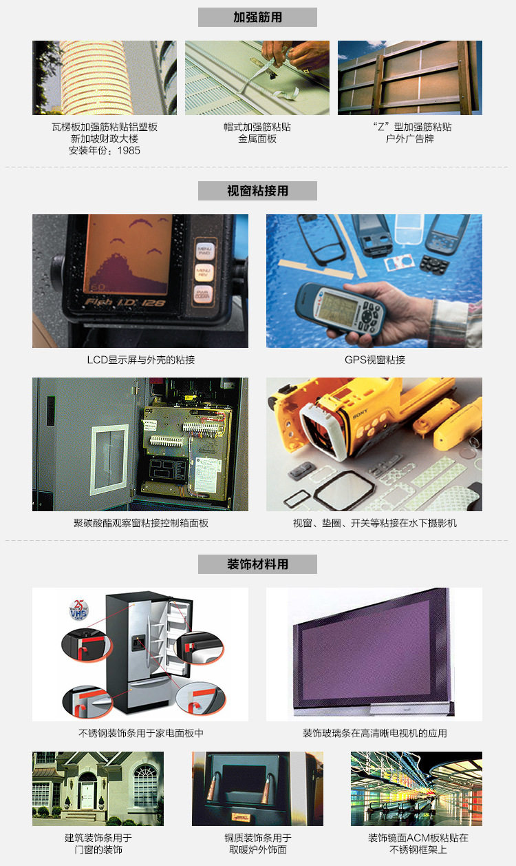 应 用:适用于汽车配件、五金、电子、等工业产品,空调器、办公家具、通讯设备中的加强筋,车辆总装、建筑标志等场合。3M魔术贴:http://www.smdjn.com