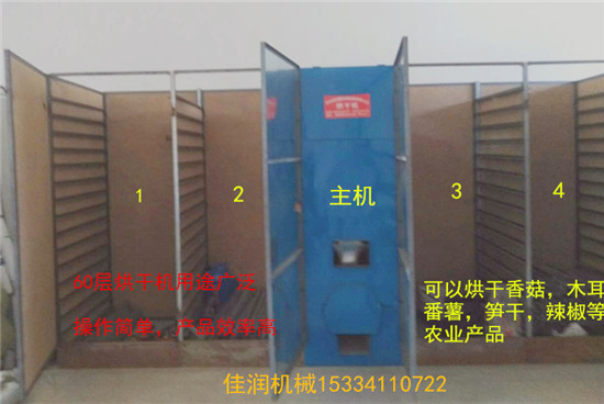 2 、使用时正确操作方法:将承载物用的筛子均匀地放上待烘干的物料后,按顺序依次装入箱体内,关好箱门,开启风机,然后将烟煤块或柴禾放入炉膛中点燃进行加热,开始火力不宜过大,应慢火加温,前两个小时内,每隔 20 分钟左右,应上下换一下筛子位置,有已烘干的及时收取。烘制过程中,温度控制在25 °— 35 ° 为宜。随着产品水分的蒸发, 2 小时后将筛子里面的烘干的产品挑起,可适当延长换筛时间。温度可提高到 60 °。温度过高时,应打开炉膛,防止产品变色。停火后,风机要继续旋转 5 – 10 分钟。